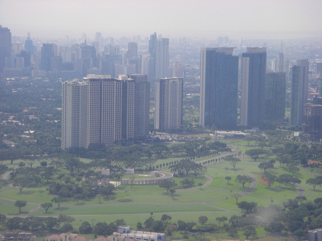 フォート・ボニファシオ・グローバル・シティは、マニラ・ゴルフやフォルベス・パークなどの高級住宅地を挟んでマカティの東に隣接する新興都市だ。もともと国軍の基地(フォート・ボニファシオ)だったものが、1990年代半ばに民間に払い下げられた。そして2000年に入ってから急ピッチで開発が進められ、瞬く間に都市が出来上がってしまった。現在も高層ビルの建設ラッシュで、あちらこちらで槌音が聞こえる。マカティあるいはオルティガス並みの都市になるのにさほどの時間は必要としないだろう。 フォート・ボニファシオのシンボルはアメリカン・セメタリーだ。第2次世界大戦で日本と戦って死んだ兵士のなきがらが眠っている。ここだけはいくら開発が進んだとしてもそのまま残るだろう。フィリピーノの死者に対する畏敬の念は絶大だから、ここを移設するというような発想は絶対に出てこない。写真中央がアメリカン・セメタリー、その上がグローバル・シティのコンドミニアム群、遠くに見えるのがマカティのビル群だ。手前はマッキンレーの新興高級住宅街。 30ヘクタールはあろうかという広大な墓地は、墓地と言うより公園だ。周囲のビル群との対比が美しく緑がまぶしい。私はここをマニラで最も美しいところと称し、多くの人を案内しているが、当のマニラッ子は意外と行ったことがない人が多い。入場料も取られないので、少なくとも一度は訪ねてみる価値があるだろう。 中央の回廊には埋葬された兵士の名前が刻まれた壁が延々と続く。その数ざっと4万人と膨大だ。さらに中央のマリア像がある付近には、当時の戦闘の模様がモザイクで刻まれている。レイテ海戦など耳にした事のあるタイトルがついている。 ボニファシオは、マニラ国際空港(NAIA)の滑走路の延長線上にあり、ひっきりなしに飛行機が往来する。紺碧の空にフィリピン航空のエアバス(?)が飛ぶ姿は、よく空を眺めていた子供のころを思い出す。 ボニファシオ・グローバル・シティの商業の中心がマーケット・マーケットだ。ユニークな巨大な屋根を持つ、近代的モールで、経営はビサヤ地方に根拠を置くガイサノだ。モールは人であふれ、中央の吹き抜け部分から人の動きが良く見える。 巨大な屋根の下はオープンマーケットの雰囲気を醸し出している。多くの屋台が健康野菜やそれぞれの地方の名産品を売っている。その地方に旅行をしたような気分になる。 非常にゆったりとしたレイアウトで、車やバイクのの展示場などもあり、屋根の下のベンチでくつろぐ人もたくさんいる。 マーケット・マーケットの周りにはアヤラ開発の中層高級コンドミニアムのセレンドラや多くの高層コンドミニアムが建設中だ。しかし、マーケット・マーケットで買い物する人々はそこからやってくる人ばかりではなくて、タギグなどの周辺の庶民がたくさんやってきてるようだ。学校をサボって朝から晩まで冷房の利いたモールで過ごし、夜は友達と飲みに行く毎日で、挙句のはてにハイスクールから追い出されてしまう、というワルな女生徒も多くいるそうだ。 ボニファシオも病院や学校が建てられ、いよいよ都市としても機能が充実してきている。左はセント・ルークス病院。ケソンの一流病院の最新鋭病棟だ。オープンしたばかりで、現在もっとも最先端を行く病院と言える。
