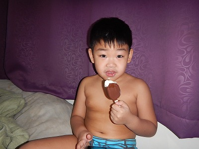 最近はパソコン・チケットの効能も薄れて、算数を勉強する代わりにアイスクリームがほしい、I can not survive without ice cream(アイスクリーム無しでは生き延びられない)などと人を馬鹿にすることを言う(もっとも私が教えた表現ではあるが)。仕方が無いので買ってきてやると、Later, Later(後で後で)を繰り返し、結局、算数の勉強なしでアイスクリームをかすめ取るのが一週間近く続いた。私がいくら強制したところで、その気が無いと身に付かないので、結局、根負けとなる。