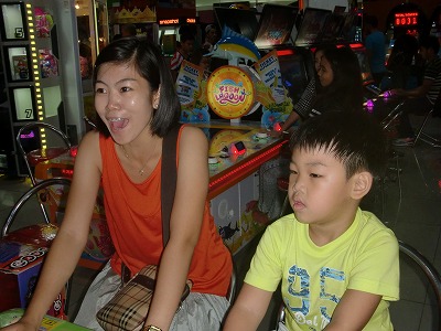 KIANは、ことのほかご機嫌でママ・ジェーンや私にべたべただだった。KIANはシャブシャブといえば、イカボールとヌードルさえあれば十分。他のものには一切手を出さない。しかし、彼の狙いは他にもあった。食事も終盤になるとKIANはしきりに外に出たがる。要は遊びに行きたいのだ。パパ・カーネルとママ・ジェーンを店に残して、アティ・キムと外に出た。もちろん会計係の私は欠かせない。向かったのがタイムゾーン、毎週土曜日、ピアノのレッスンの前に楽しんでいるゲーセン・チェーンだが、さすがにMOAのタイムゾーンは人であふれ、機械の数も多い。
