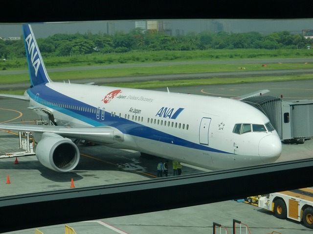 2011年2月28日からANAがマニラー成田間に就航したと聞いて、一度乗って見たいと思っていた。この便(NH950)は朝、9時45分にマニラをたって、午後3時に成田に到着する。ANAは外国航空会社としてはじめてターミナル3を使うのだが、ここはマカティから15分程度ときわめて近いから、9 時45分発という時間は全く苦にならない。マカティを7時半に出ても十分間に合うだろう。ちなみに日本航空のJAL746は9時10分発だが、ターミナル 1を使っており、かなり交通が混雑するので朝の6時ごろには出ないとまずい。一方、デルタ航空のDL172は7時40分発で、5時前に出なければならない。